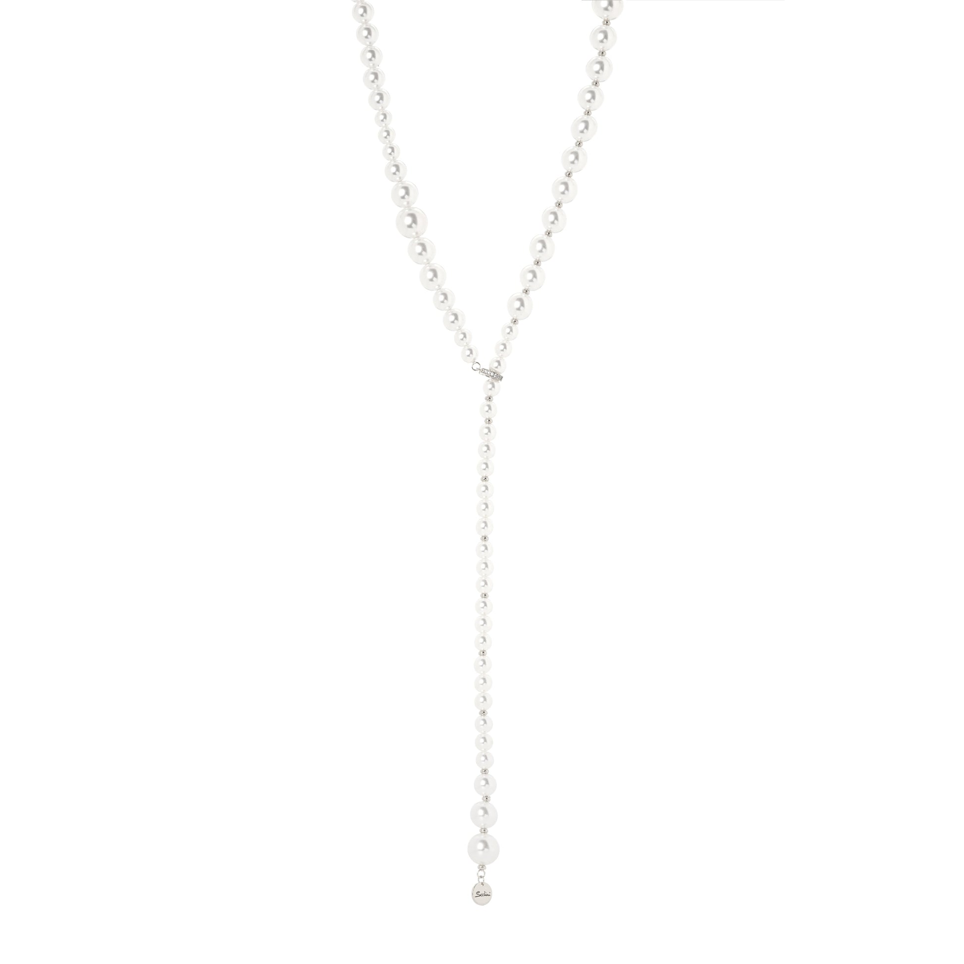 Aggiungi alla tua mise uno stupenda collana lunga che mette in luce il tuo allure. Design luminosissimo con filo di candide perle dalle dimensioni variegate in composizione a Y ed alcuni micro anelli che insieme impreziosiscono il decollete. Un accessorio in una versione dai toni del bianco e rodio, perfetto per non passare inosservata. Targhetta Sodini come pendente.