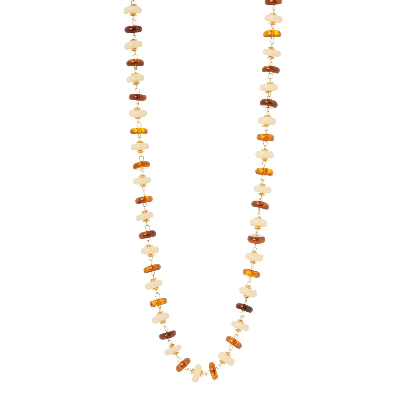 Collana lunga a bonbon Vieste - Avorio e ambra