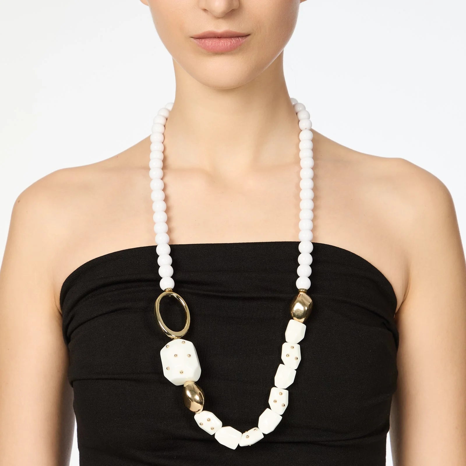 Collana lunga boule ed elementi poliedrici Filicudi - Bianco