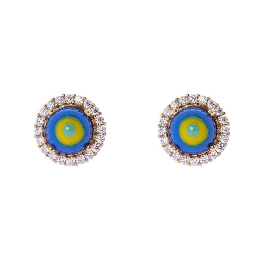 Regalati il piacere di indossare un paio di mini orecchini che donano un tocco raffinatissimo e trendy. Design accattivante con un lucidissimo e cromatico cabochon incorniciato da una brillante rosetta di zirconi che ti regala il sogno delle luci del mediterraneo. Una coppia di accessori perfetti con qualsiasi outfit, in una versione del blu e oro. Logo Sodini sul retro. - Ogni pezzo è realizzato a mano e presenta caratteristiche uniche, pertanto possono essere presenti variazioni fra articoli analoghi.