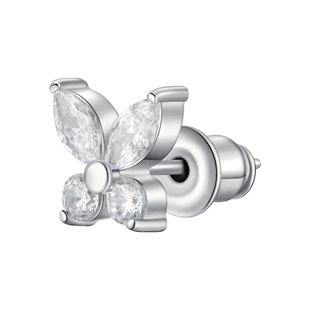 MONO ORECCHINO DONNA IN ACCIAIO CON FARFALLA CON ZICONE BIANCO