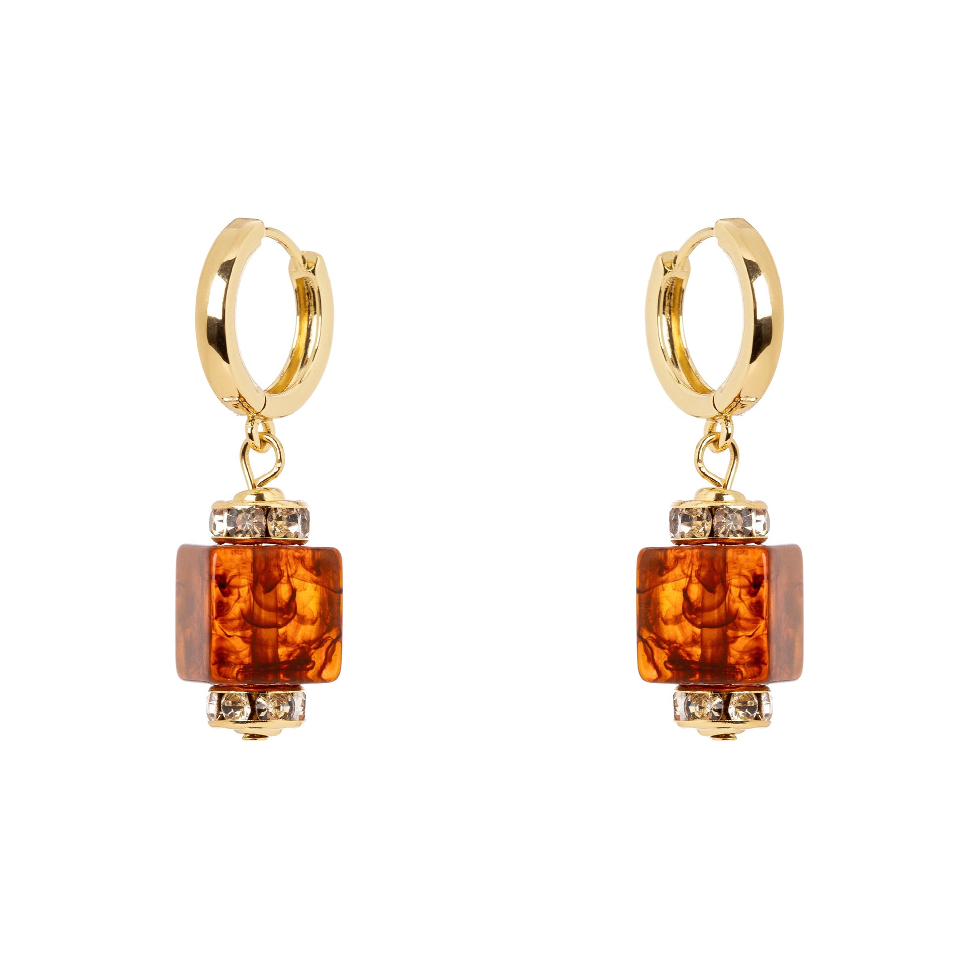 Orecchini a cerchio ed elemento cubico Yaba - Marrone