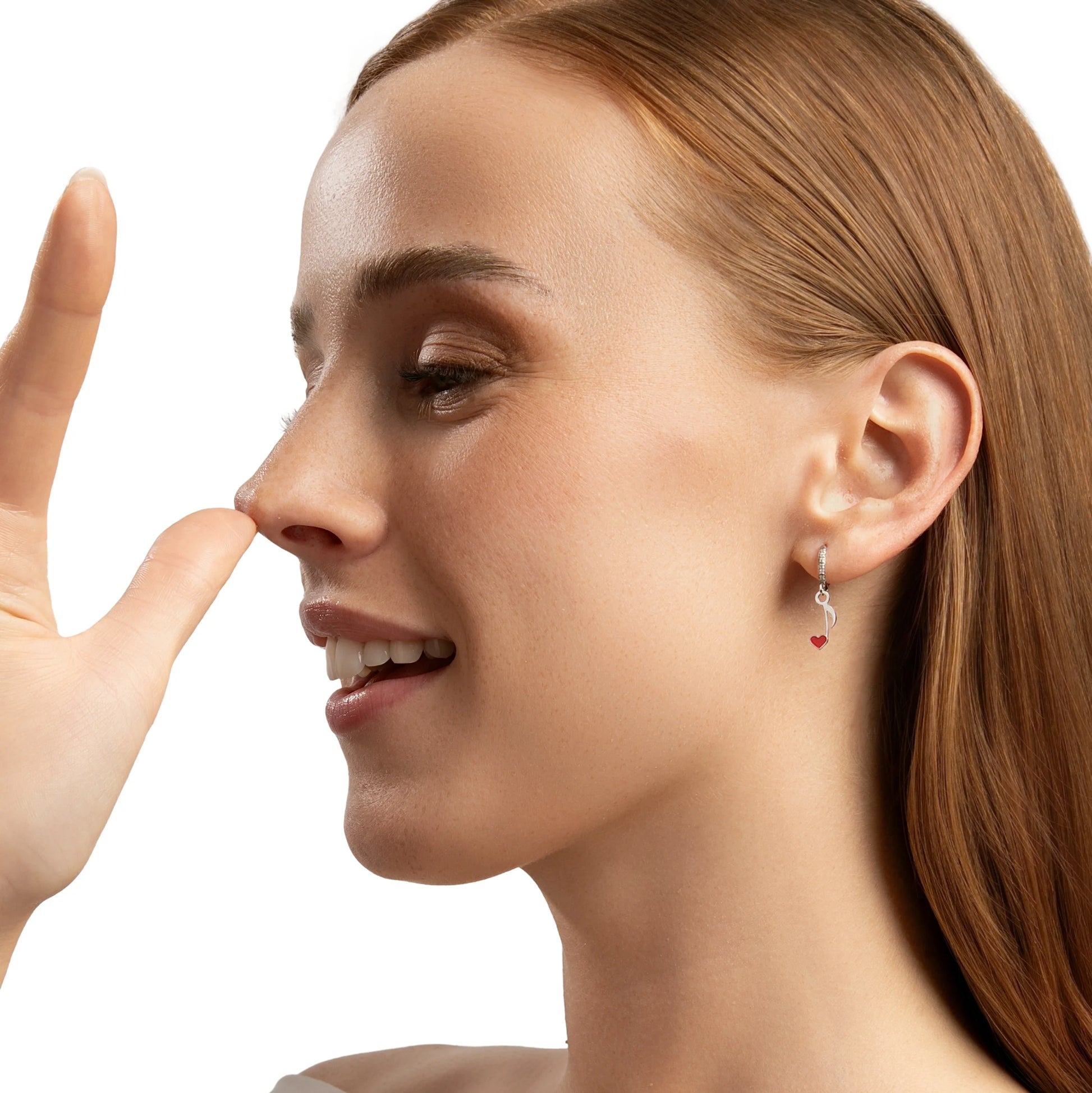 Orecchini a cerchio con cristalli con piccola nota musicale e chiave di violino caratterizzate da un piccolo cuore rosso al centro. Chiusura a scattino.