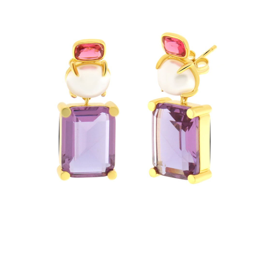 Orecchini in Argento 925 con zirconi rettangolari viola
