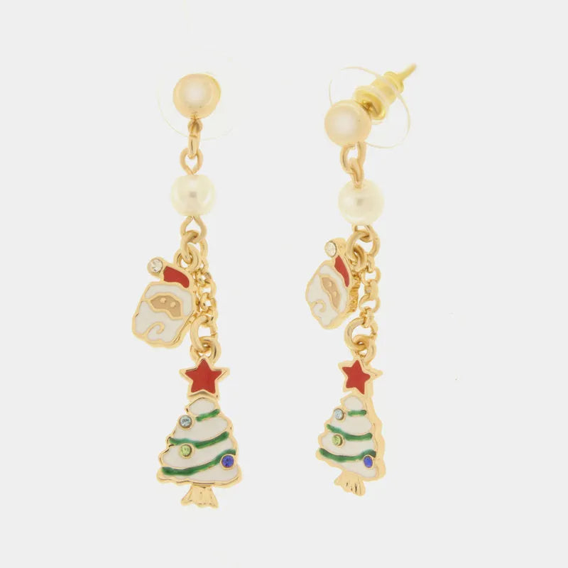 Orecchini in Metallo con albero di natale pendente e babbo natale