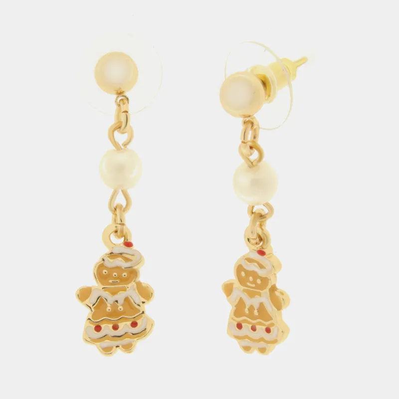 Orecchini in Metallo con omino di pan di zenzero e perlina